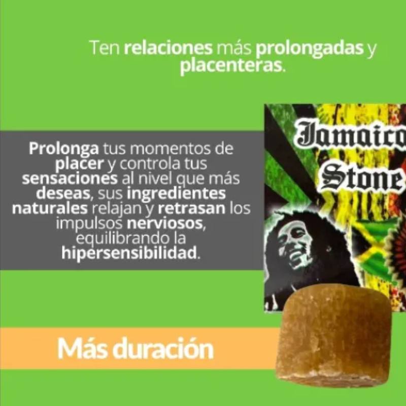 La Piedra de Jamaica retardante es un producto natural de uso externo, diseñado para disminuir la sensibilidad del glande de manera leve y controlada. De esta forma, ayuda a prolongar el tiempo de la relación sexual y a mejorar el control eyaculatorio.